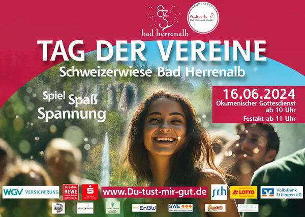 Der Tag der Vereine beginnt um 10 Uhr mit einem ökumenischen Gottesdienst, zu dem die evangelische, katholische und freichristliche Kirche einladen. Um 11 Uhr erfolgt die offizielle Eröffnung mit einem Festakt, bei dem eine Reise in die 875 Jahre lange Geschichte Bad Herrenalbs unternommen und gleichzeitig ein Blick in die Zukunft geworfen wird. Das Grußwort spricht Rainer Wieland, MdEP.