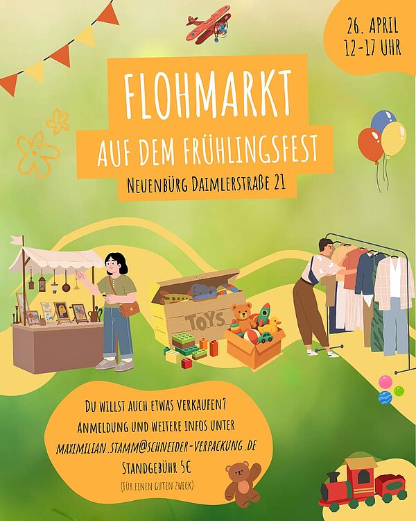 Auch wer selbst verkaufen möchte, hat noch die Möglichkeit, sich anzumelden. Interessierte können sich per E-Mail an maximilian.stamm@schneider-verpackung.de wenden, um weitere Informationen zu erhalten. Die Standgebühr beträgt 5 Euro und kommt einem guten Zweck zugute.