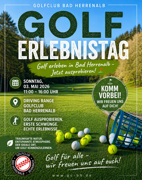 Am Sonntag, den 03. Mai 2026, lädt der Golfclub Bad Herrenalb herzlich zum Golf-Erlebnistag ein.